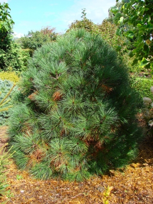 Pin jaune de californie nain. Aiguilles très longues, jaune bleuté. Hauteur 3 à 4m.