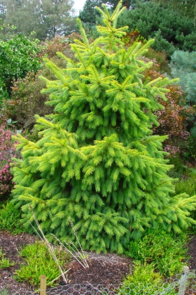 Sa couleur jaune doré, présente toute l'année, rend cet épicéa unique.