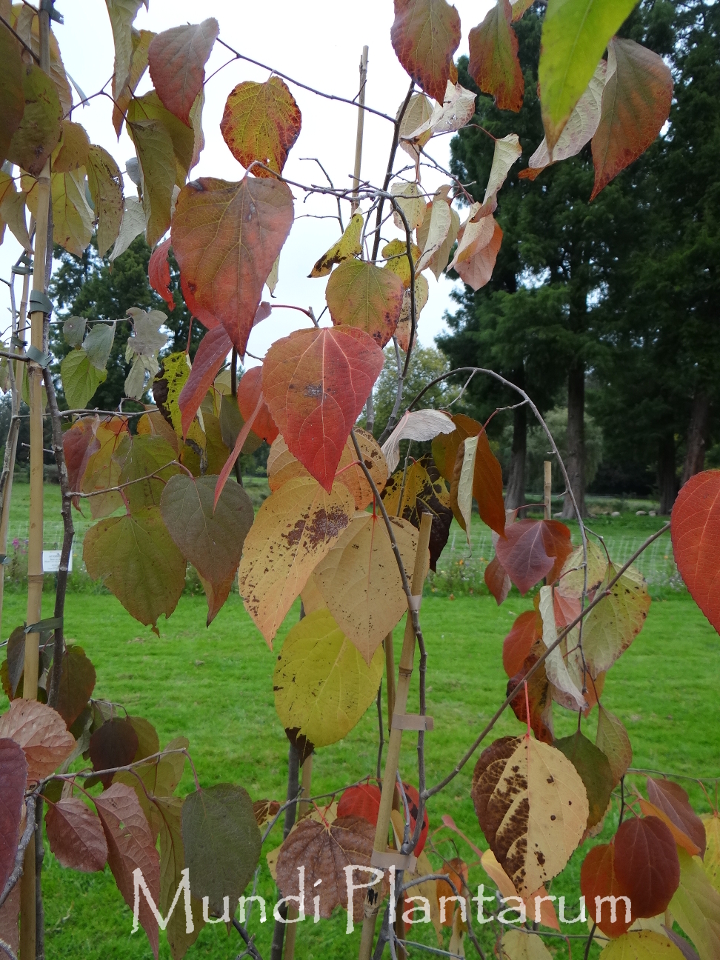 Arbre aux fleurs de perle. Arbuste à petit arbre aux feuilles rosées rouges au printemps. Belles couleurs d'automne: rouge, orange, jaune, pourpre. Fleurs en grappes blanc ivoir. Hauteur 6m.