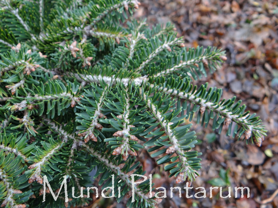 Small shrubby fir with a supple habit and tiered branch. Intense dark green. Slow growing, height 1m, width 1.5m.