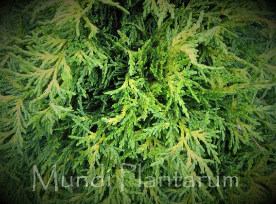 Dwarf Lawson Cypress in regular ball. Twigs open irregularly. Scales green to yellow. Height from 80cm to 100cm.