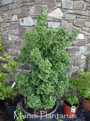 Maidenhair tree. American dwarf selection with very dense and erect port. Leaves rounded in rosette, regular. Green then yellow. Height 120cm.
