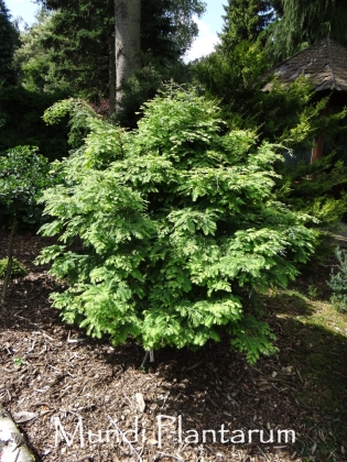 Dwarf Dawn Redwood with rounded habit and soft, drooping branches. Beautiful orange autumn color. Height 1m.