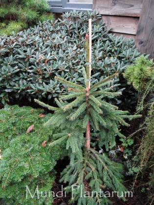 Small spruce with weeping habit. The needles are bright green and the wood is relatively red. Height from 2m to 3m.