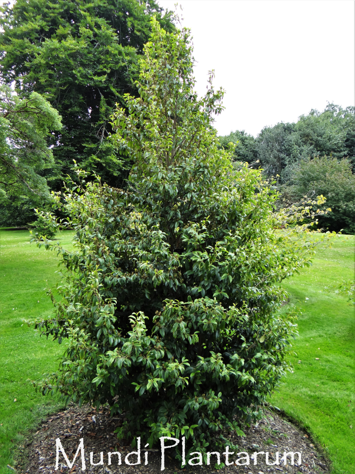 Shrub close to Hamamelis with its winter flowering in stringy orange-yellow flowers. Small evergreen shrub up to 3 to 5m.