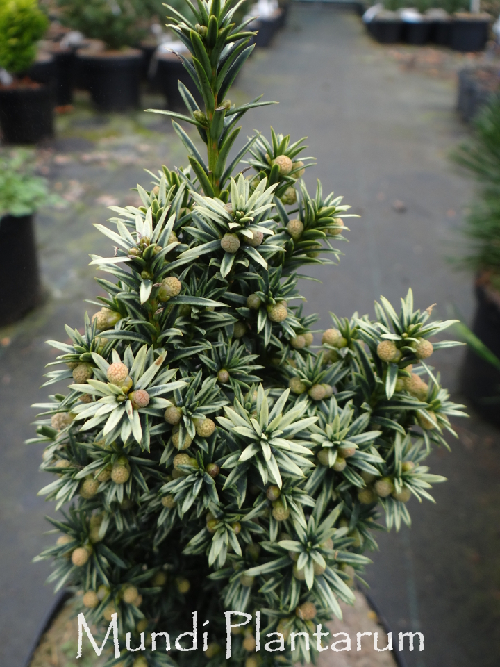Miniature yew with very dense harbor. The needles are short and generously variegated with golden creamy yellow. Height 40 to 60cm, width 20 to 30cm.