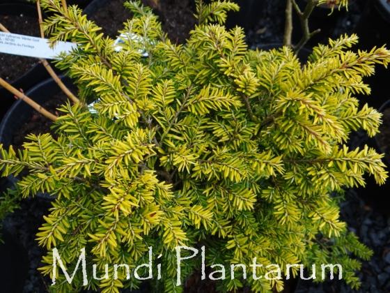 A dwarf conifer with an upright, conical, irregular habit. Needles are soft yellow when first opened, then deep yellow. Height 2 m to 3 m.