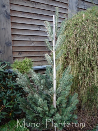 Dwarf Douglas introduced from USA. Slow growth, erect, irregular, open and picturesque. Twisted twigs. Neddles bluish green. The new shoots are reddish. Height 250cm.