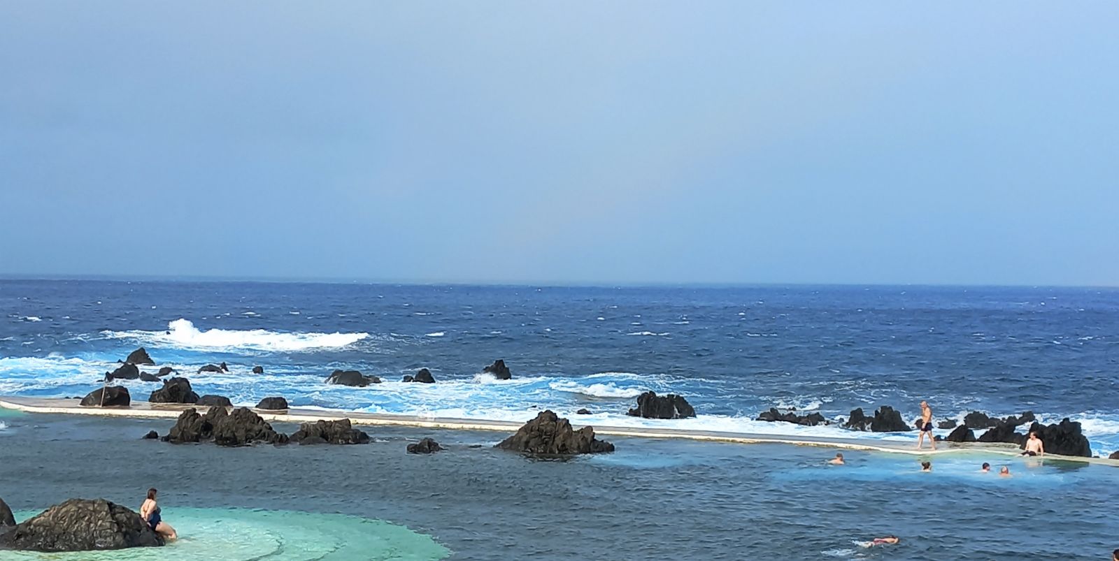 Quels plaisirs que de jouir de ces piscines naturelles avec ces vagues océaniques qui s'invitent brutalement par dessus les jetées. Mille fois mieux que les piscines à vagues du Sian Park de Tenerife ou de celles de Floride.