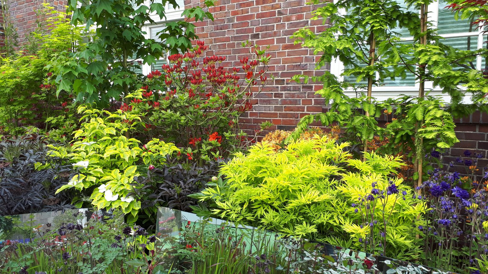 Dans cette région, riche en tourbières, on y trouve beaucoup de pépinières, notamment spécialisées en rhododendrons, mais aussi en conifères. Les allemands utilisent leurs techniques de culture avec zèle; les plantes sont taillées, densifiées et utilisées parfois de façon inattendue, comme ce tapis carré de Pinus, ci dessus, à droite.