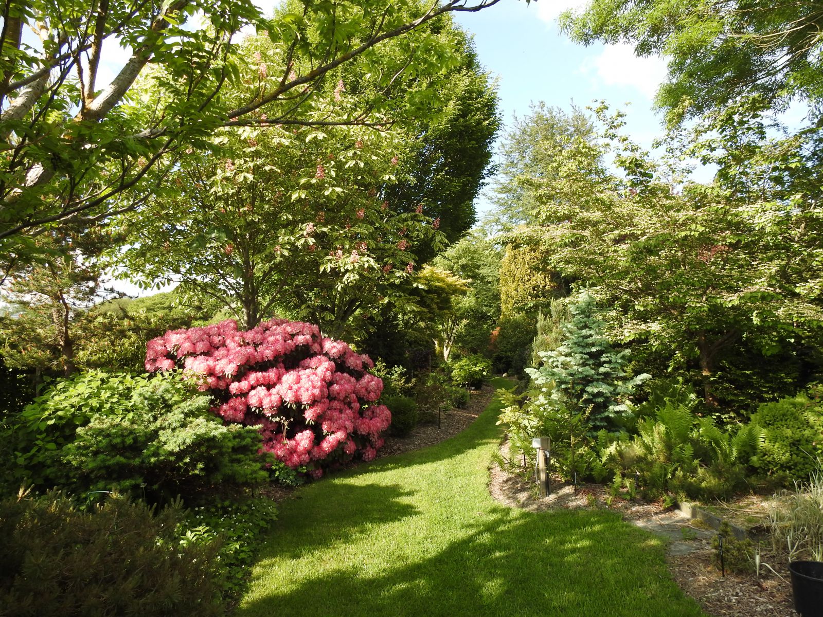 Cette année les kalmias n'ont jamais été aussi beaux. Ils sont très prometteurs. Les conifères sont tout en couleur avec les nouvelles pousses et les cônes colorés.