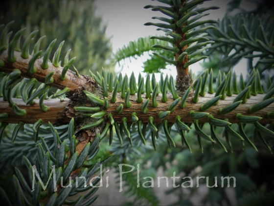 - FORME: les aiguilles mesurent 1,2 à 20mm de long et 2 à 3mm de large. Elles sont érigées, radialement organisées tout autour des rameaux, spiralées, épaisses, très rigides, bien droites, et presque piquantes. Elles sont massives et lourdes et présentes sur toutes les branches, même au coeur de la plante. Elles offrent une texture très graphique et intéressante à exploiter dans les jardins.