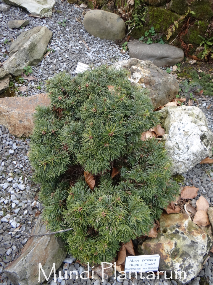 Sélection miniature du sapin noble. Croissance très lente, dense, en boule régulière. Aiguille vert bleu à gris. Hauteur et largeur de 25 à 30cm.