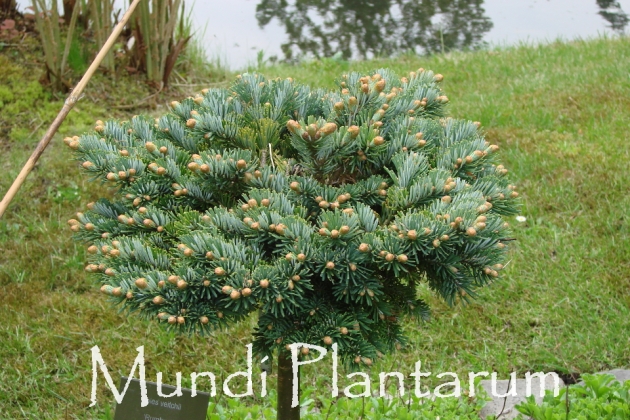 Balais de sorcière du sapin de veitch. Découverte américaine. Aiguilles vert tendre, nouvelles pousses bleutées striées de blanc. Hauteur 50cm, largeur 70cm.