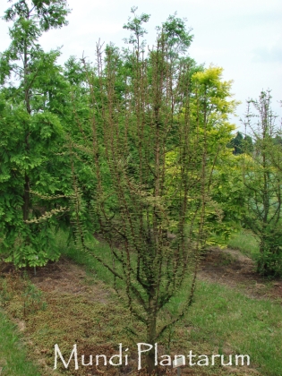 Conifère conique à érigé, de petite taille et aux petites feuilles. Extrémité des rameaux crème. Hauteur 6m, largeur 2m.