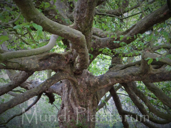 - PORT: Couronne globuleuse aplatie. Buisson dont les ramifications poussent dès la base et qui se développe en un arbre de taille moyenne au branchage tortueux et étalé