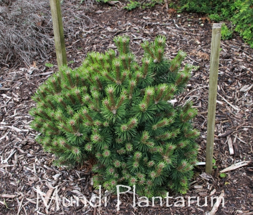 Pin miniature au port en boule parfaite, plus globuleux avec l'âge. Aiguilles de taille moyenne vert profond. Hauteur 50cm à 60cm.