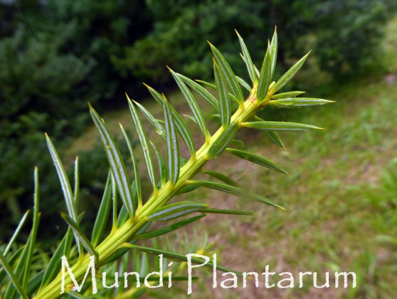 - NOTE: Podocarpus nubigenus est morphologiquement similaire à P. totara et P. laetus de Nouvelle-Zélande, mais il présente un point de distinction remarquable : il porte des lignes stomatiques audacieuses, larges et d'un blanc brillant sur la face inférieure de ses feuilles relativement courtes et piquantes.