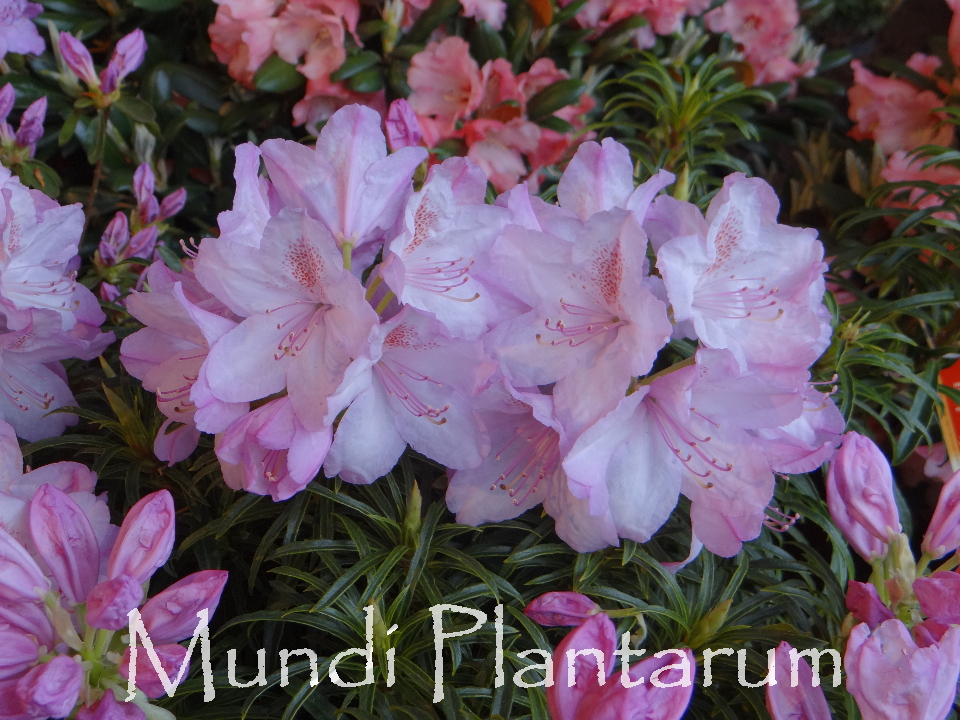 Rhododendron nain au port compact, plus large que haut. Feuilles filiforme vert luisant. Fleurs roses. Hauteur de 60cm, largeur 90cm.