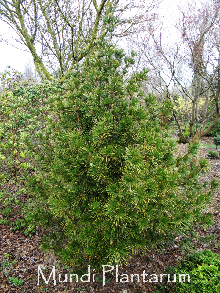 Pin parasol japonais, au port conique régulier. Aiguilles variables, assez rigides, vert clair olive. Hauteur 2,5m.