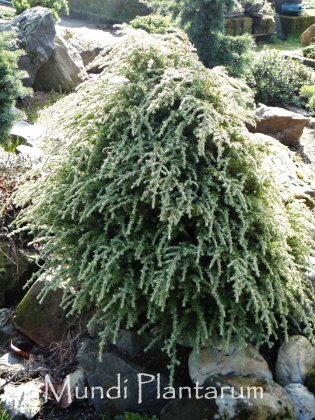Petit conifère au port ovoide aux branches totalement retombante. Les aiguilles sont vert saupoudré de blanc éclatant. Hauteur 1m en 10ans.