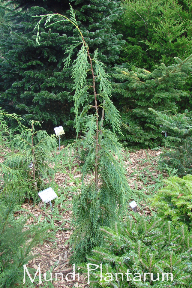 Cyprès érigé aux rameaux retombants, hirsutes, vert éclatant. Forme tortueuse. Hauteur 2 à 3m.