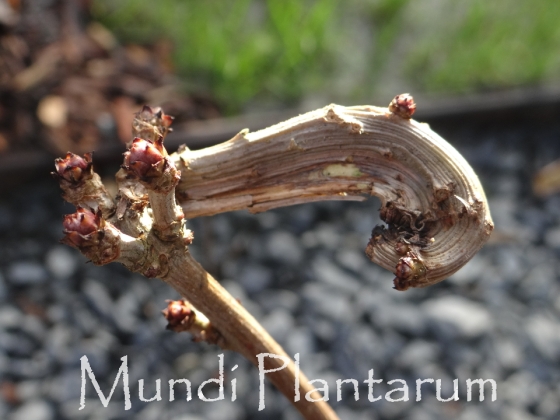 Sureau tortueux aux rameaux particulièrement torturés. Feuilles vertes implantées irrégulièrement. hauteur 1m.